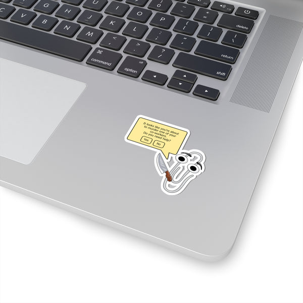 A cheeky, dark-humor sticker that blends retro office nostalgia with a sharp, modern twist. It snaps onto laptops, journals, planners, or any smooth indoor surface to add an irreverent laugh and a little edge to your daily gear. Durable vinyl and glossy finish bring out the bold colors and crisp lines, while the kiss-cut backing lets you peel and place with zero fuss. This sticker lands somewhere between witty sarcasm and playful office angst — for those who enjoy a private chuckle during long workdays or want a conversation-starting accent on their tech.